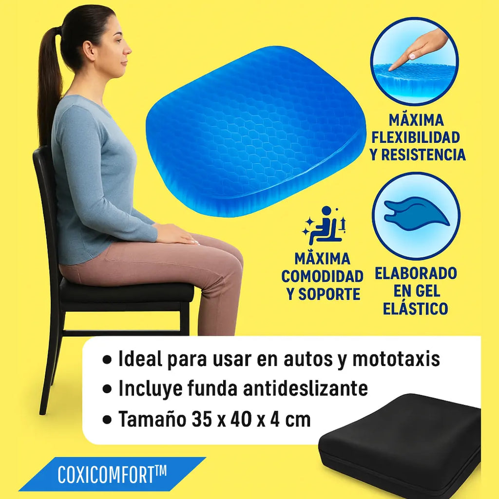 ¿Pasás horas sentado trabajando, manejando o estudiando? Sabemos lo incómodo (y doloroso) que puede volverse eso para tu espalda, caderas y piernas. CoxiComfort™ es más comodidad, menos dolor y mejor postura desde el primer uso.